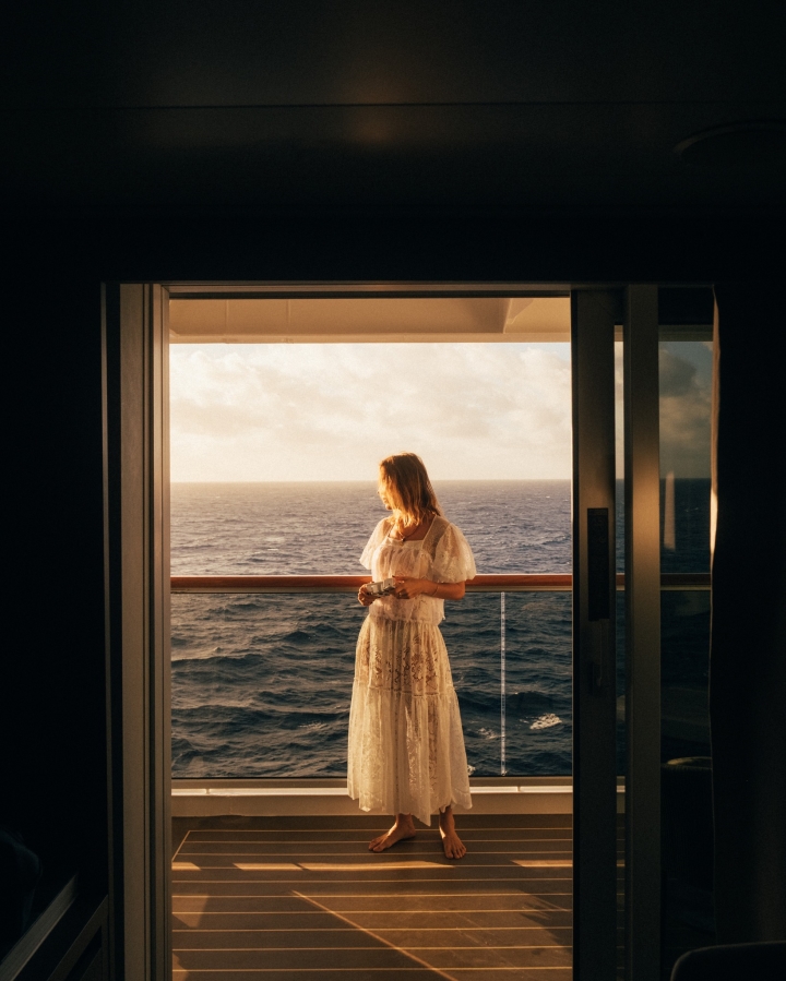 No inside cabins. No obstructed views. Every single suite is ocean-front with floor-to-ceiling windows and a private terrace bathed in sunlight. Spacious walk-in wardrobes, marble bathrooms with dual rain showers and deep soaking tubs, and a calm, neutral palette create the feeling of an exclusive seaside residence at sea.