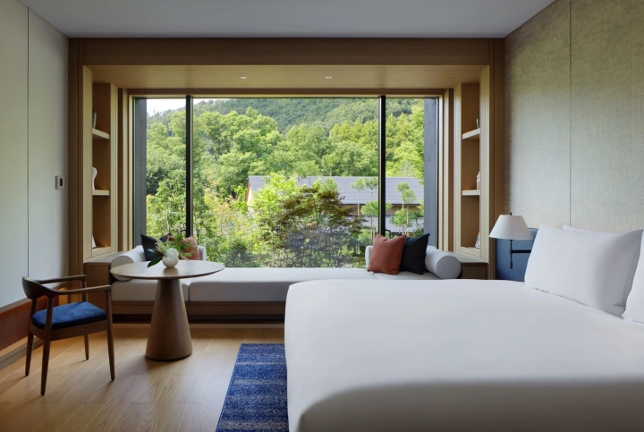 Escape to ROKU Kyoto nestled in the scenic foothills of Kyoto's Takagamine mountains, ROKU Kyoto, LXR Hotels & Resorts, offers an unparalleled blend of contemporary luxury and traditional Japanese artistry. Inspired by the region's rich cultural heritage and natural beauty, this serene retreat features elegantly designed rooms and suites with breathtaking views, a rejuvenating natural onsen, exquisite dining experiences showcasing seasonal kaiseki cuisine, and immersive activities like tea ceremonies and cycling through lush landscapes. Whether seeking tranquility or cultural immersion, ROKU Kyoto promises an unforgettable escape in the heart of Japan's ancient capital.