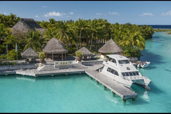 It is located in the pristine island of Bora Bora. Reaching out across 44 acres of lush landscaping, edged by powdery white sands and a crystalline lagoon with the majesty of Mount Otemanu for iconic backdrop, the resort represents the epitome of carefree elegance. Showcases for the warm glow of exotic woods accented by handcrafed Polynesian art, its 91 Villas are gracefully designed to embrace indulgent island living, whether in the spacious comfort of the largest overwater accommodations in the South Seas, or the tranquil seclusion of stunning beach retreats.