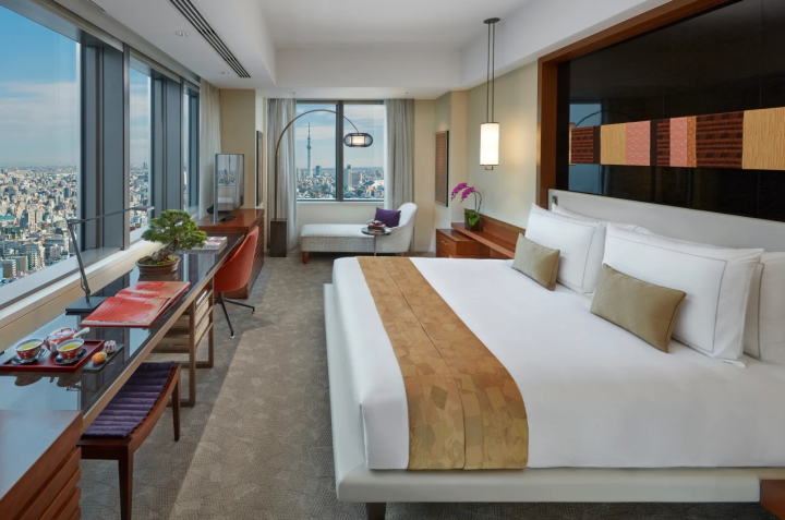 客房位於高樓層之上,擁有無可比擬的城市景觀——從晴空塔到富士山輪廓,在晴朗日子裡一覽無遺。室內設計以簡約線條結合精緻材質,呈現出既溫暖又現代的居住感。寬敞的浴室、落地窗與細緻入微的服務,共同構築出一種近乎私密會所般的奢華體驗。