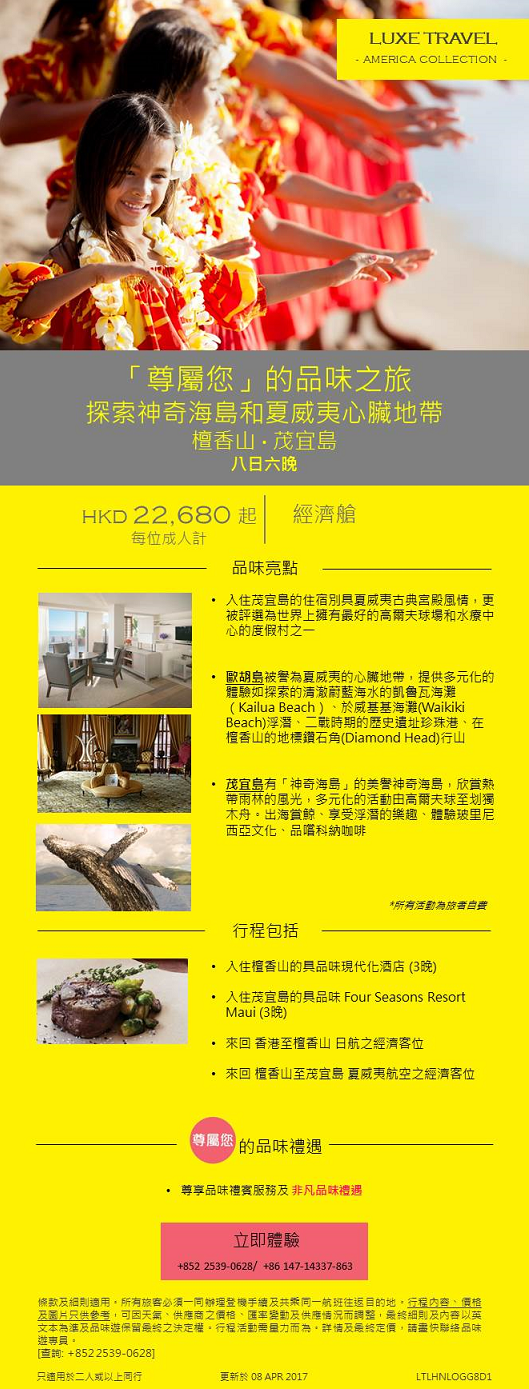 *條款及細則適用。優惠適用於由香港出發。優惠需視乎酒店及機票之訂購情況,不能兌換現金或與其他任何優惠同時使用。如有任何爭議,以英文本為準及品味遊保留最終之決定權 。