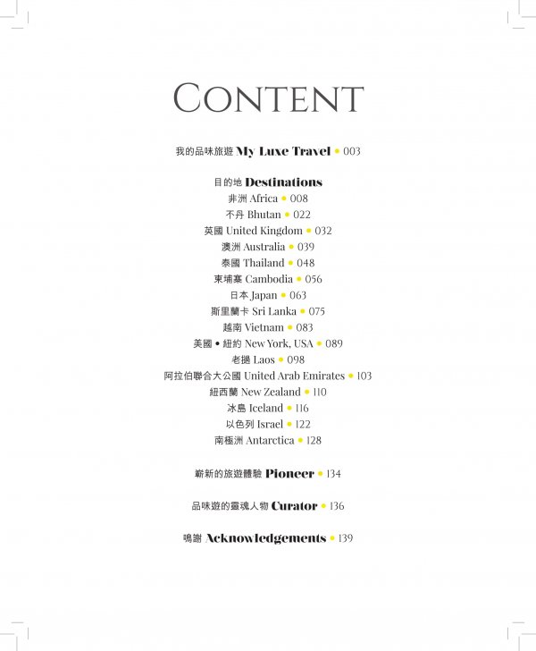 品味游的专业团体花了近一年时间筹备《品味游∙壹》限量珍藏版旅游专书中英文本,书中介绍16个旅游点鲜为人知的品味一面。书中还有知名人士分享对品味旅游的看法,正如首席品味游专员杨迪深先生分享: 「透过《品味游∙壹》一书,我们希望分享不同国家的品味一面,及崭新的旅游体验,给对生活有品味要求的旅者。」